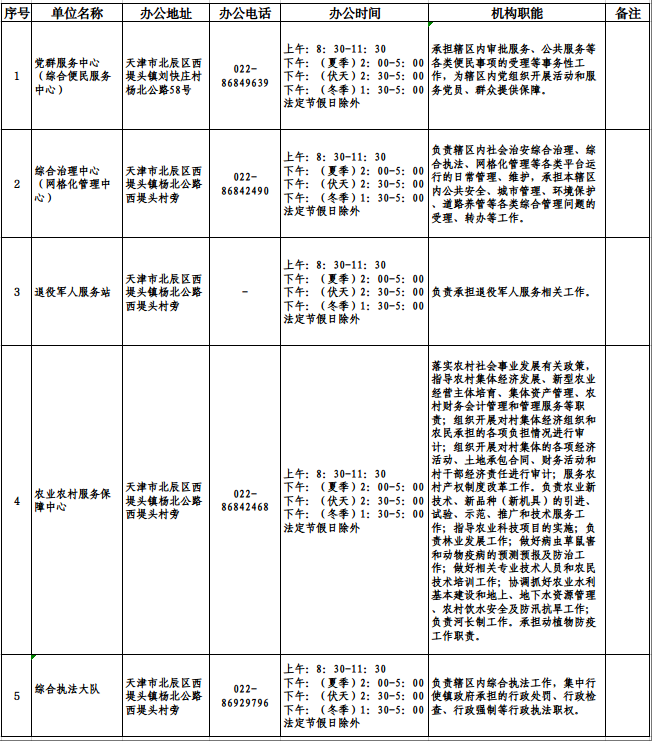 北辰区西堤头镇所属事业单位