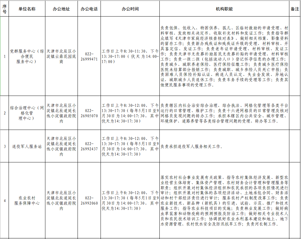 北辰区小淀镇人民政府所属事业单位