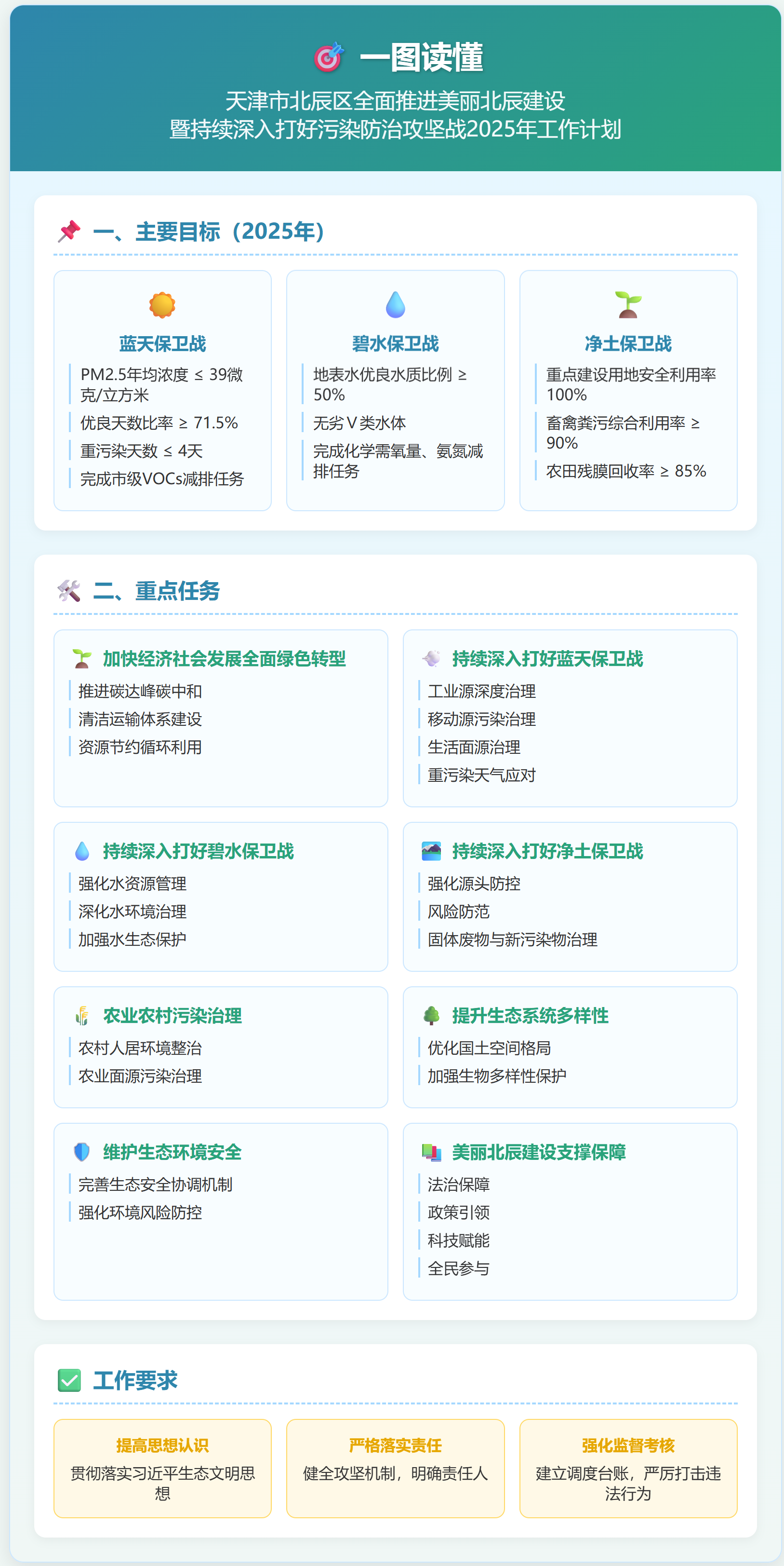 《天津市北辰区全面推进美丽北辰建设暨持续深入打好污染防治攻坚战2025年工作计划》图片解读