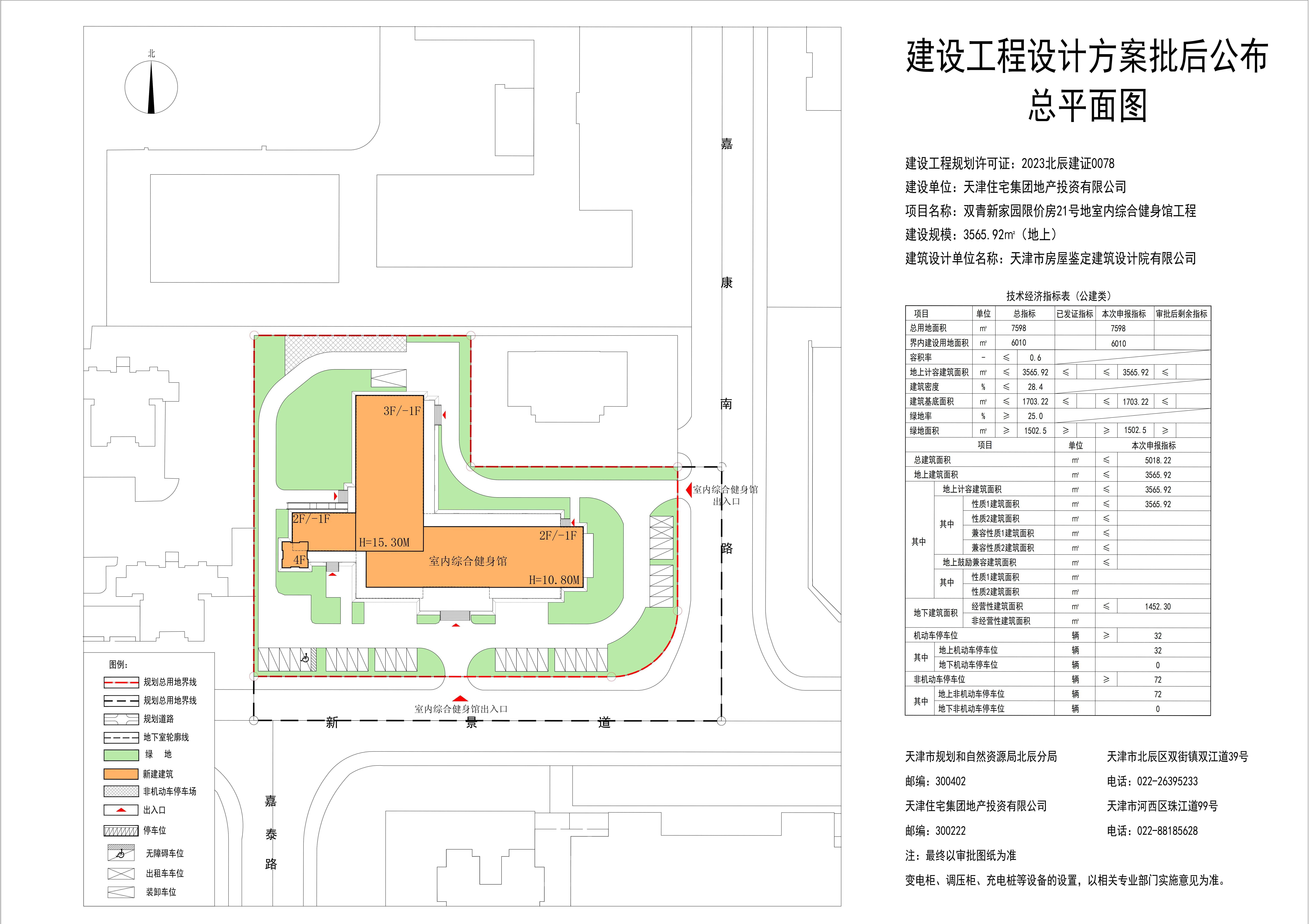 现将天津住宅集团地产投资有限公司双青新家园限价房21地块室内综合健身馆项目建设工程设计方案总平面图进行公布。